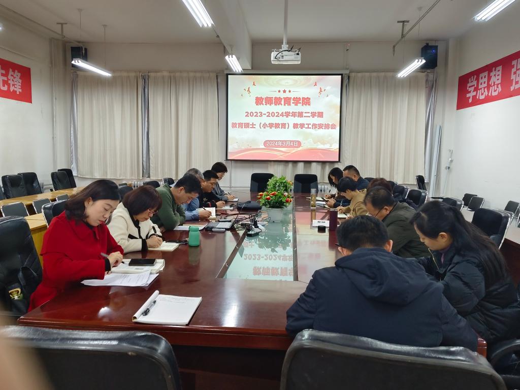 3月4日下午,tyc522cc太阳成集团召开了2023-2024学年第二学期教育硕士(小学教育)教学工作安排会,会议由公司负责人主持,公司全体研究生导师及研究生教学秘书参加了会议。