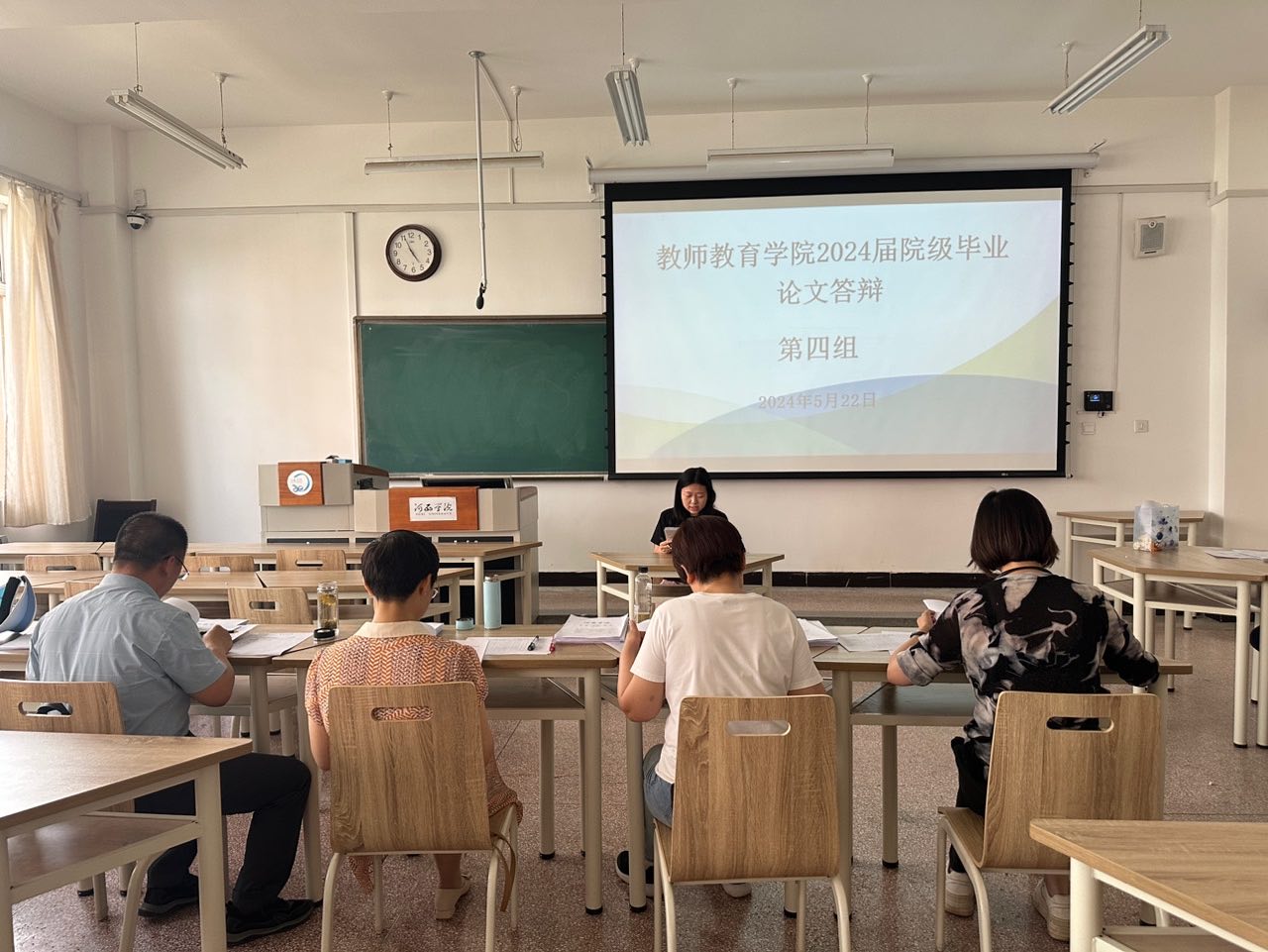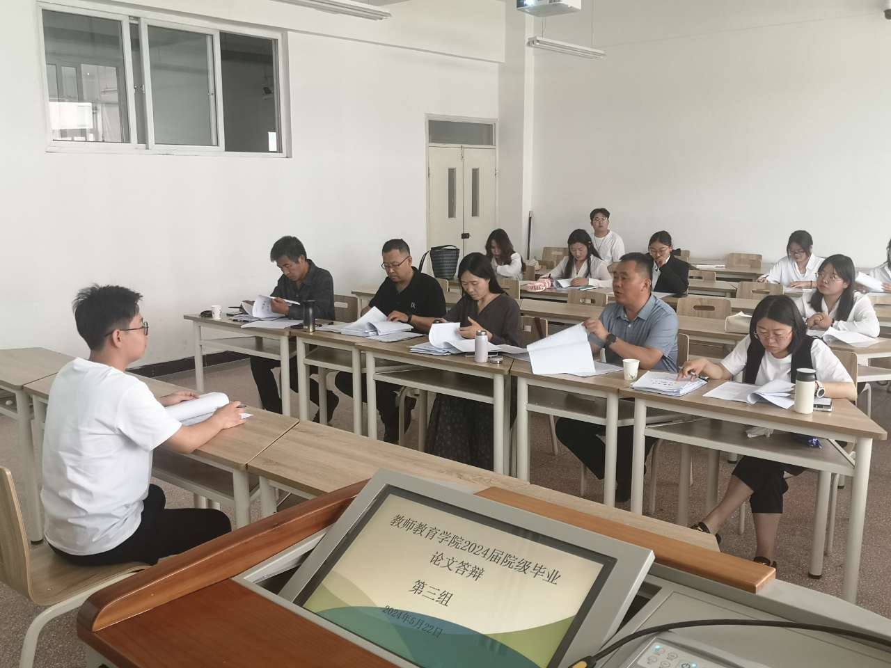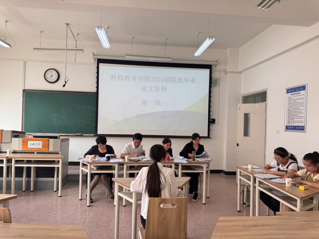 根据教务处《关于做好2024届本科毕业论文(设计)答辩工作的通知》的安排,tyc522cc太阳成集团于5月22日下午组织开展了2024届院级本科生毕业论文答辩。参加本次答辩的员工有60人,共分5个答辩小组,每组设4名评审教师与1名答辩秘书。
