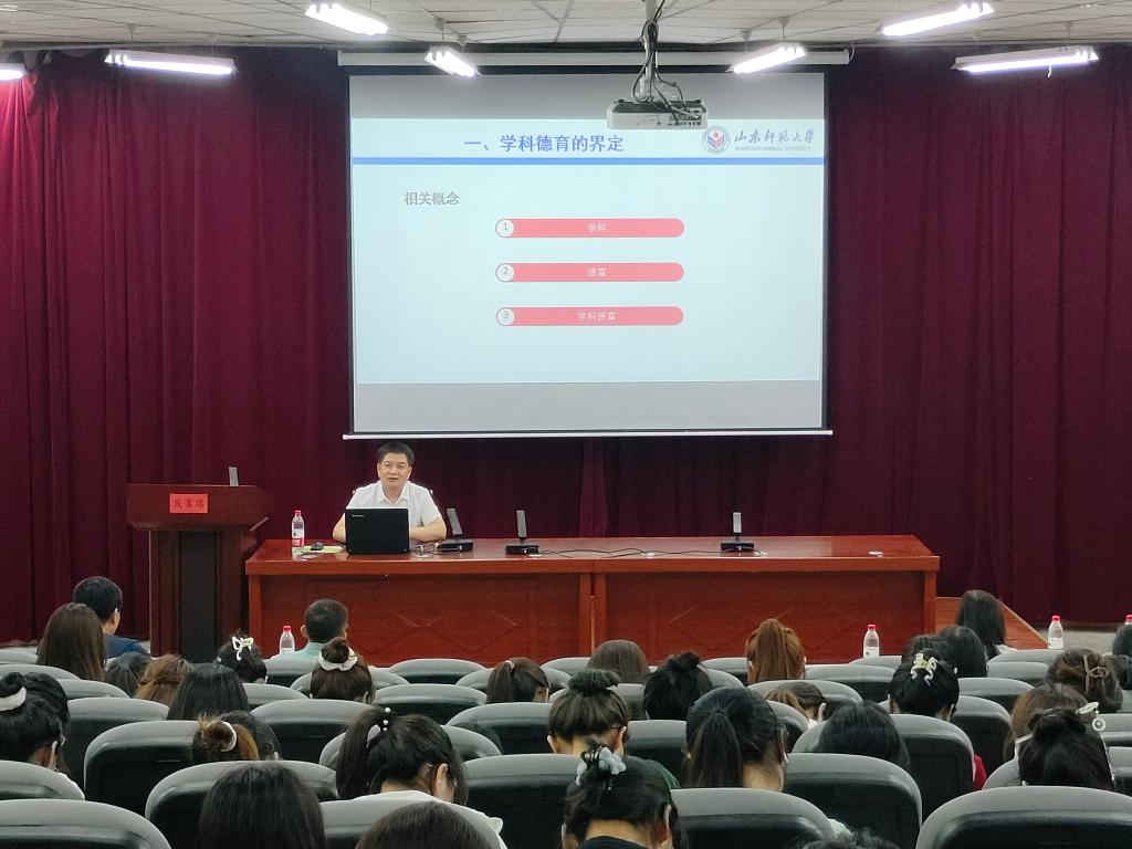 6月13日下午,tyc522cc太阳成集团教育学部副部长、博士生导师冯永刚教授应邀为tyc522cc太阳成集团师生作了题为《学科德育及其有效实施》的学术报告,小学教育专业部分教师和员工共200余人参加了报告会。