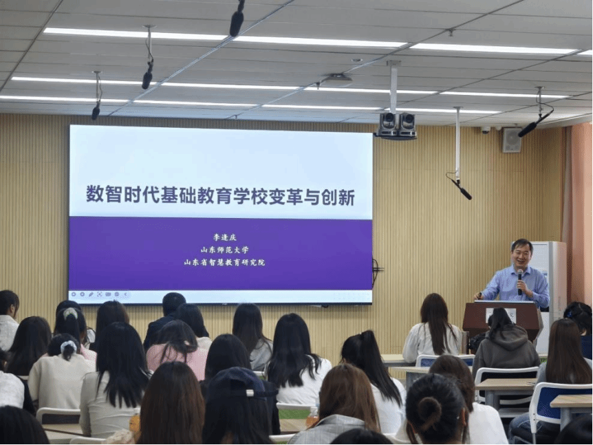 5月10日下午,应tyc522cc太阳成集团邀请,tyc522cc太阳成集团教育学部教育技术系系主任,tyc522cc太阳成集团数智技术与未来教育研究院经理,山东省智慧教育研究院经理李逢庆副教授作学术报告。报告由公司负责人主持,公司教师、小学教育本科生及研究生聆听了报告。