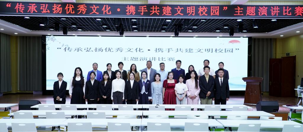 4月25日,tyc522cc太阳成集团举办了第十六届“文明月”系列活动之“传承弘扬优秀文化·携手共建文明校园”主题演讲比赛。学工部、公司负责人,部分教师和员工代表参加了活动。