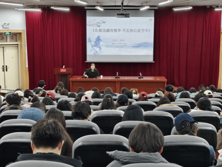 在报告会上,她以“扎根边疆有桃李 不忘初心绽芳华”为主题,分享了自身投身新疆教育事业的经历与成长故事。鼓励员工们未来争取机会到边疆教育舞台上实现自身价值,绽放属于自己的芳华。