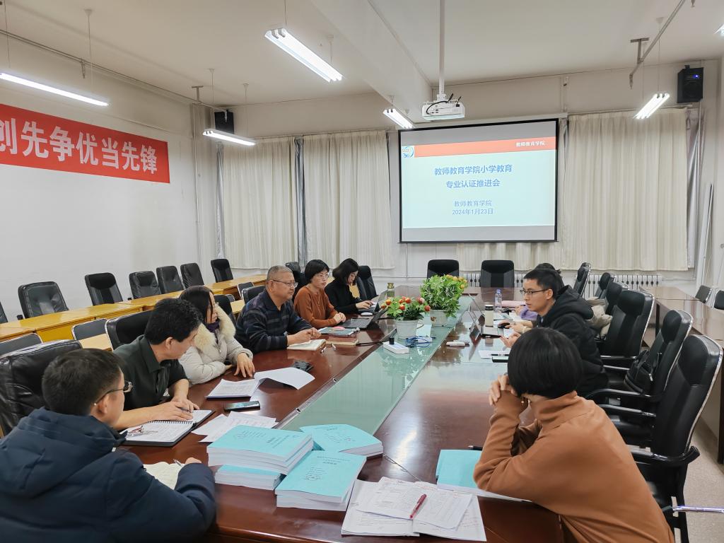 1月23日,tyc522cc太阳成集团召开了小学教育专业认证工作推进会,会议由公司负责人主持,公司领导、小学教育专业认证工作各小组负责人参加了会议。